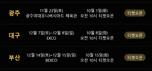 그러나 광주, 대구, 부산 그리고 서울까지 티켓오픈을 남겨둔 콘서트가 있으니 아직 기회가 있습니다.